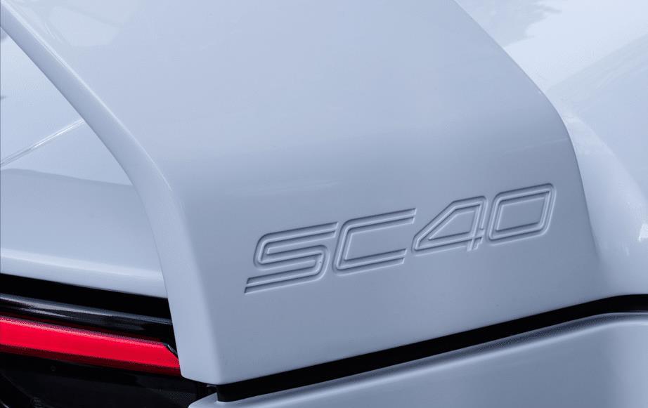尽管如此,SC40的外观并非一比一复刻。车头加入了一块从左至右贯穿的黑色面板,酷似泪痕般的设计极具辨识度,车头灯则被巧妙地镶嵌于叶子板中。车侧进气口延续了F40上标志性的 “NACA Scoop” 造型,后轮拱处的线条更为硬朗,F40车尾两侧的鳃型风道也被移至后轮上方,并简化成双条式开口。